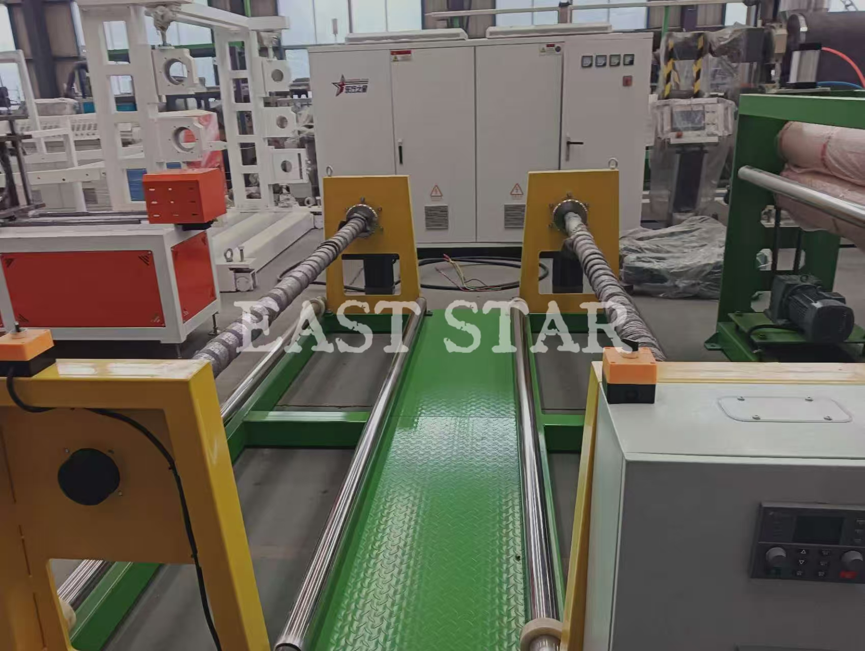 · तीन-रोल कैलेंडर: पिघली हुई निकाली गई शीट को ठंडा और पॉलिश करता है, अंतिम उत्पाद की मोटाई और फिनिश को सटीक रूप से नियंत्रित करता है।