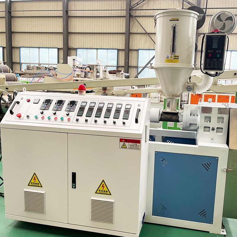पीई बैग एज स्ट्रिप एक्सट्रूज़न मशीन में सिंगल स्क्रू कंप्रेसर - मशीन हेड मोल्ड - वैक्यूम शेपिंग वेयरहाउस - ट्रैक्शन ट्रैक्टर - वाइंडिंग शामिल है
