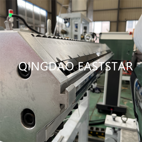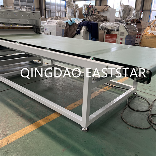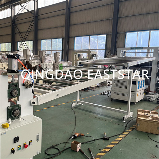 पीवीसी कैनोपी पैनल उपकरण में मुख्य रूप से एक ट्विन-स्क्रू एक्सट्रूडर, एक प्लेट मोल्ड, एक तीन-रोलर कैलेंडर, एक कूलिंग ब्रैकेट, एक रबर रोलर ट्रैक्शन मशीन, एक कटिंग मशीन और एक कन्वेइंग डिवाइस शामिल है।