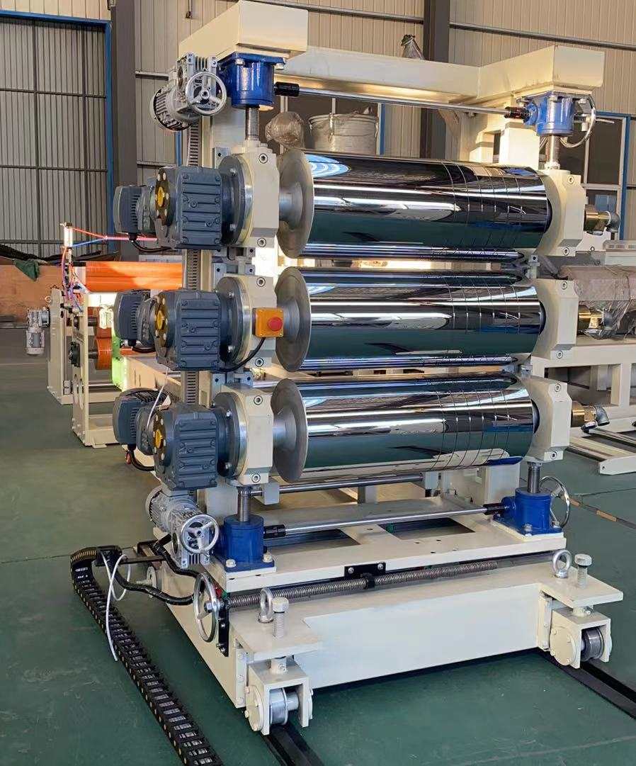 पीवीसी पारदर्शी नरम दरवाजे के पर्दे के लिए उत्पादन लाइन: 200 से 600 मिलीमीटर तक की चौड़ाई और 0.8 से 3 मिलीमीटर की मोटाई के साथ पीवीसी पारदर्शी प्लास्टिक शीट का उत्पादन करने में सक्षम। उपकरण में एक SJ90 या SJ-120 सिंगल-स्क्रू एक्सट्रूडर, एक समायोज्य टी-आकार का लचीला डाई, एक ऊर्ध्वाधर या 45-डिग्री झुका हुआ तीन-रोलर कैलेंडर, एक तीन-इन-वन पानी तापमान नियंत्रक, एक स्टेनलेस स्टील कूलिंग ब्रैकेट शामिल है जो एक चौड़ी-चौड़ाई समायोज्य ट्रिमिंग चाकू, एक रबर रोलर ट्रैक्शन मशीन और एक दोहरी स्थिति वाले वायु-विस्तारित शाफ्ट वाइन्डर से सुसज्जित है। उत्पादित शीटों में चमकदार सतह, उच्च पारदर्शिता, कोमलता, कोई दरार नहीं, कोई गंध नहीं, कोई बुलबुले नहीं हैं, और लचीली, ठंड प्रतिरोधी, पहनने के लिए प्रतिरोधी, एसिड-क्षार प्रतिरोधी और संक्षारण प्रतिरोधी हैं।