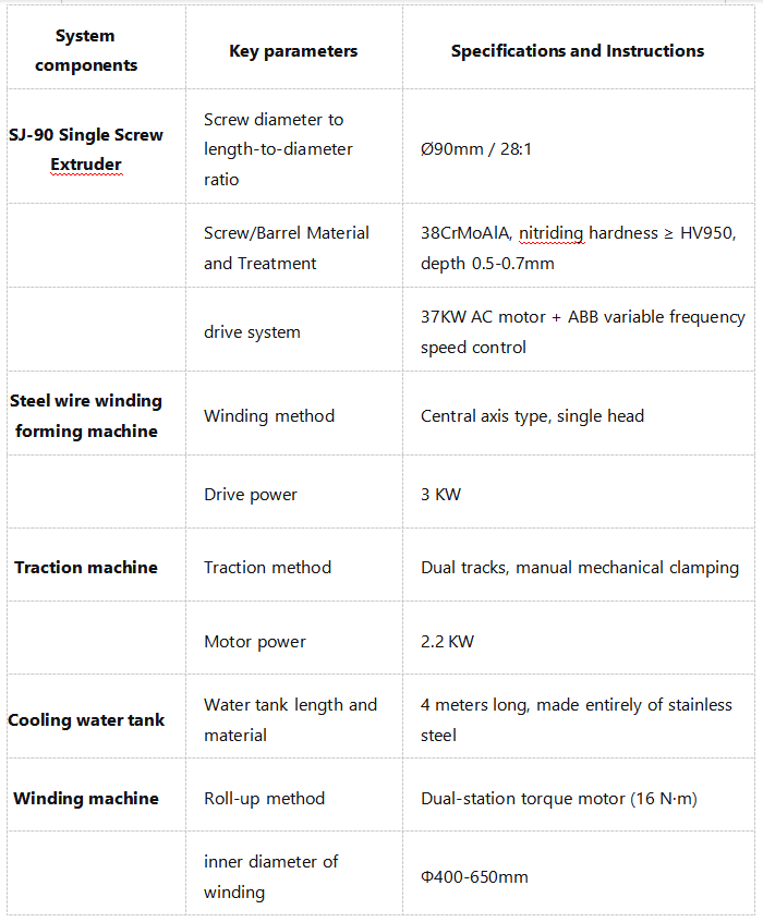 ईस्टस्टार प्लास्टिक एक्सट्रूज़न उत्पादन लाइनों का एक पेशेवर निर्माता है। हमारी उच्च-प्रदर्शन पीवीसी स्टील तार प्रबलित नली बाहर निकालना उत्पादन लाइन विशेष रूप से उच्च शक्ति, दबाव प्रतिरोधी स्टील तार प्रबलित नली के उत्पादन के लिए डिज़ाइन की गई है। उत्पादन लाइन एक एसजे-90 हाई-टॉर्क एक्सट्रूडर और एक सटीक स्टील वायर वाइंडिंग और कोटिंग सिस्टम को एकीकृत करती है, जो स्टील वायर और पीवीसी का एक आदर्श संयोजन सुनिश्चित करती है, जो दबाव-प्रतिरोधी, एंटी-फ़्लैटनिंग और लंबी सेवा जीवन वाले होसेस का उत्पादन करती है। कोर घटक एबीबी और सीमेंस जैसे अंतरराष्ट्रीय ब्रांडों से 38CrMoAlA नाइट्राइड स्टील और विद्युत घटकों का उपयोग करते हैं, जो दीर्घकालिक उपकरण स्थिरता सुनिश्चित करते हैं। अनुकूलित समाधानों और उद्धरणों के लिए अभी ईस्टस्टार से संपर्क करें!