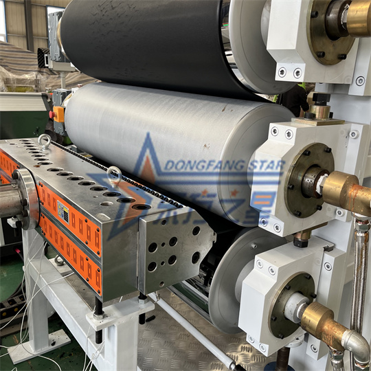 सॉफ्ट पीवीसी शीट सिंगल स्क्रू एक्सट्रूडर बनाने की मशीन : उपकरण में मुख्य रूप से एक 120 सिंगल स्क्रू एक्सट्रूडर, एक तीन-रोलर कैलेंडर, एक कूलिंग ब्रैकेट, एक रबर रोलर ट्रैक्शन मशीन, एक कतरनी मशीन और एक शामिल है।